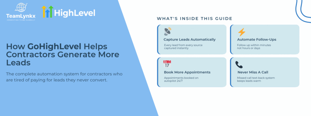 This is where GoHighLevel becomes extremely valuable. It helps contractors capture leads, automate communication, schedule appointments, and manage reviews from a single platform.